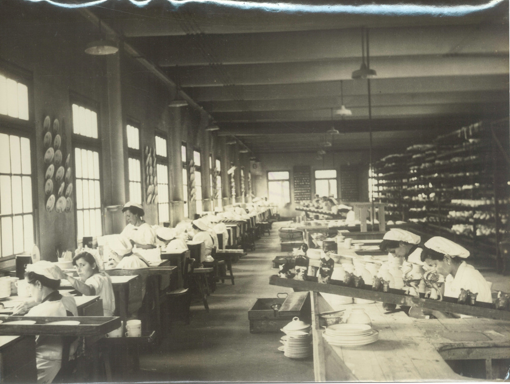 En la fábrica trabajaban tanto hombres como mujeres. Ellos se dedicaban más a las labores directivas y a la fabricación directa de las piezas y el uso de los hornos, y ellas se encargaban de la parte decorativa de las piezas.