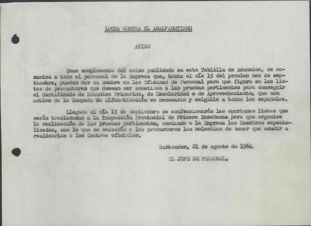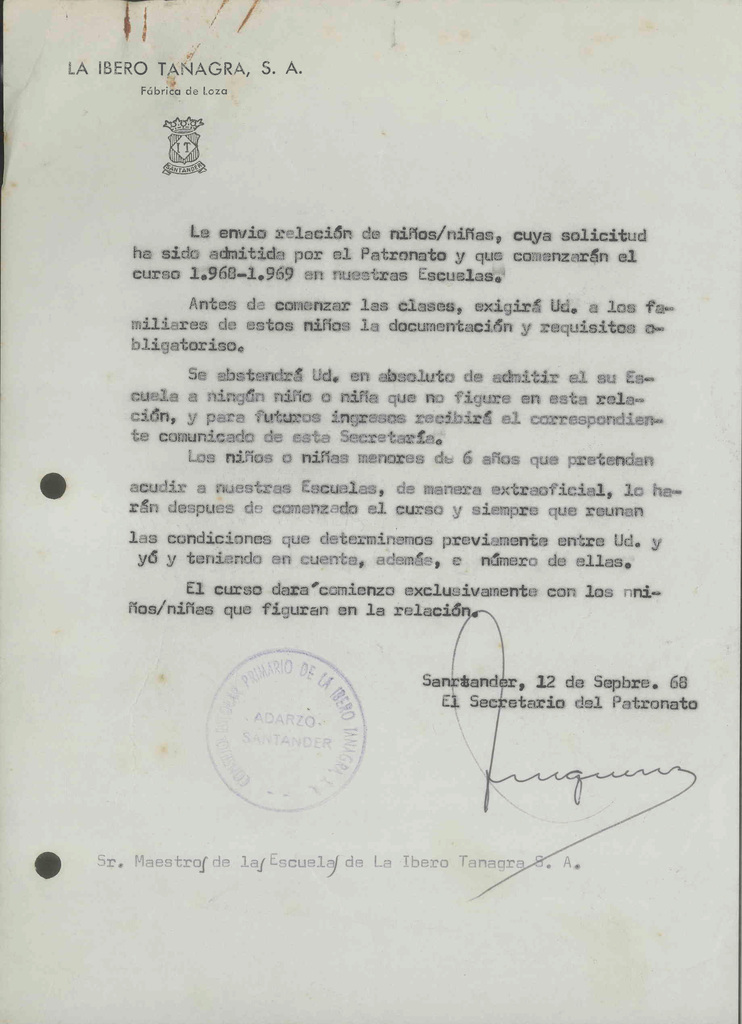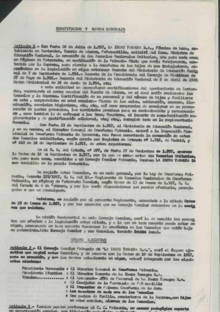 La vida en la fábrica no solo se circunscribía al trabajo diario, si no que se ampliaba a otros ámbitos. Como muchas otras fábricas de la época que podemos encontrar en Cantabria, tales como Sniace o Solvay, dentro de sus muros existía "otra vida". La Ibero Tanagra tenía su propia escuela nacional unitaria de niños y niñas, fundada en 1957, y sometida para su organización, dirección y provisión por un Consejo Escolar Primario de la fábrica. Tenía dotación presupuestaria, maestros y locales para la enseñanza.