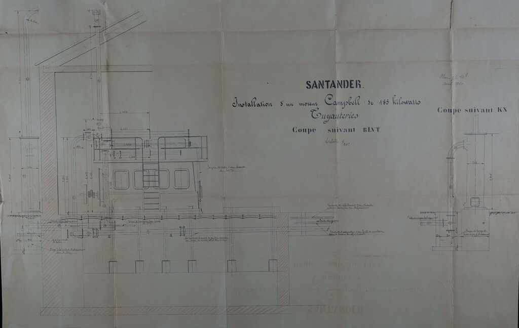 Motor Campbell de 185 kilowatts y leyenda de tuberías