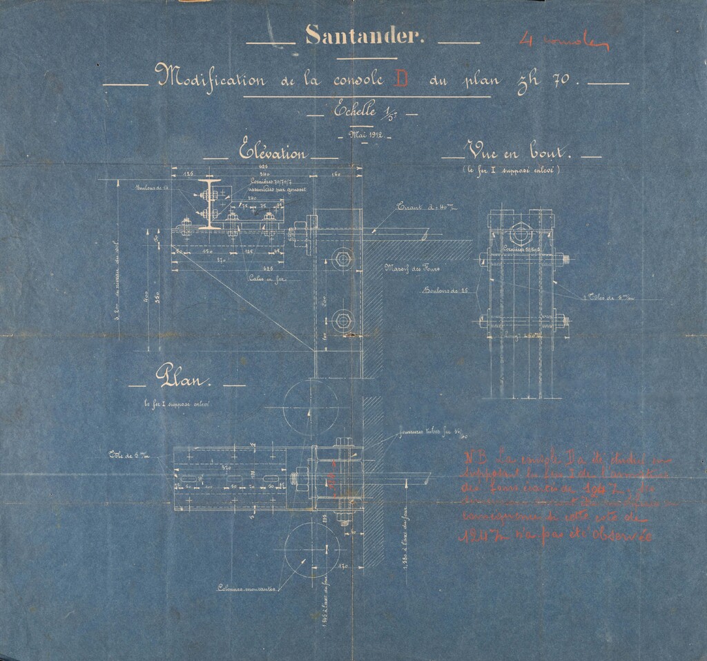 Modificación de la consola D del plano ZH 70: planta y alzado [1:50]