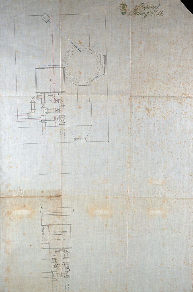 Plano de las tuberías del motor Campbell: alzado y planta [1:20]