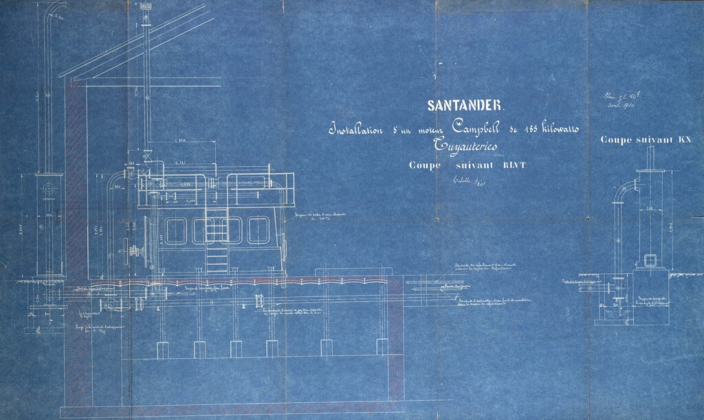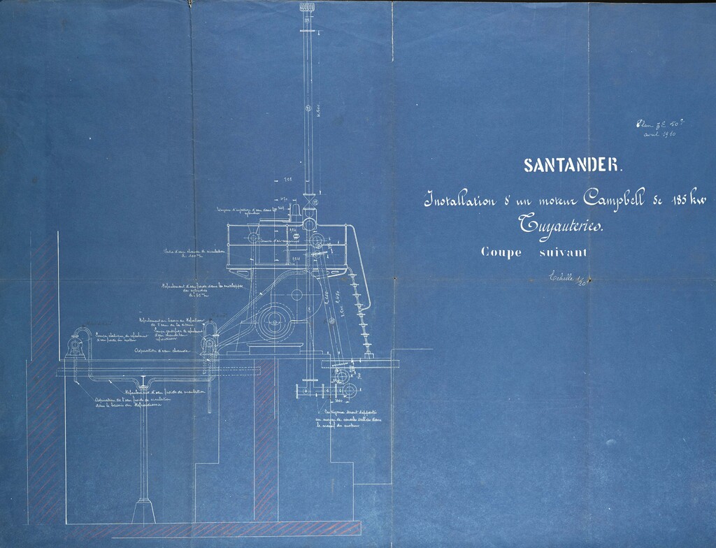 Plano de la instalación de un motor Campbell de 185 kw: alzado [1:20]