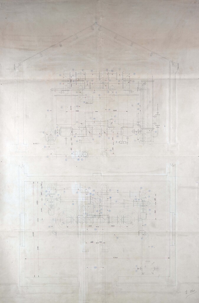 Plano de la sala de las calderas: alzado y planta [1:20]