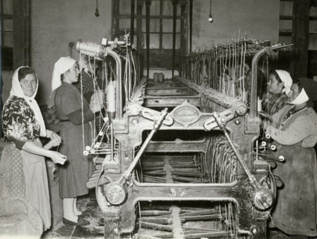 Máquinas hiladoras y operarias